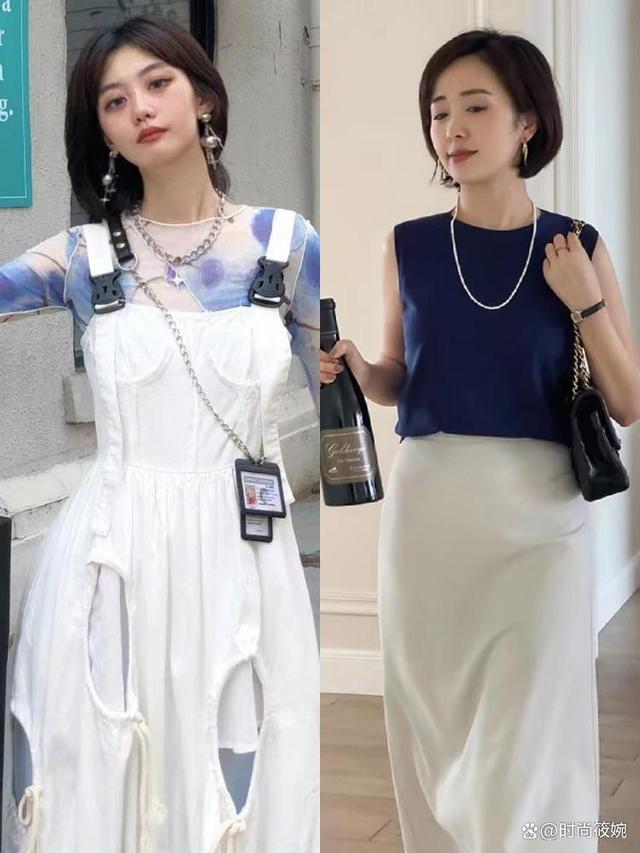 叠穿吊带的话,我们有两种方式可以选择,一种是将吊带上衣穿在里面,外面叠搭一件宽松、舒适的衬衣或防晒衫,增加层次感的同时又能展现自身优势。引用:用:用:用:Wt.180yxhl.Cn引用:Cn引用:.Cn比如两位博主的穿搭就是最好示范,十分地清爽又充满层次感,而且锁骨和颈部线条得到了释放,看上去就很迷人。